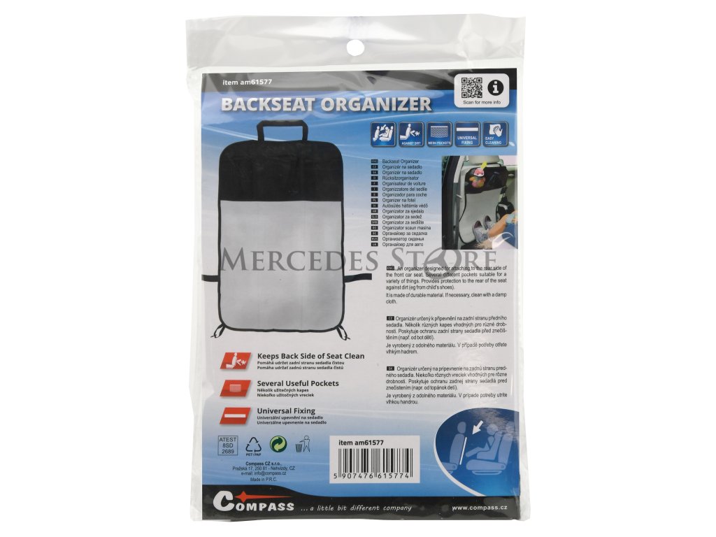 Organizér určený k připevnění na zadní stranu předního sedadla. Jedinečné uspořádání - několik různých kapes vhodných pro mapy, nápoje a různé drobnosti.
