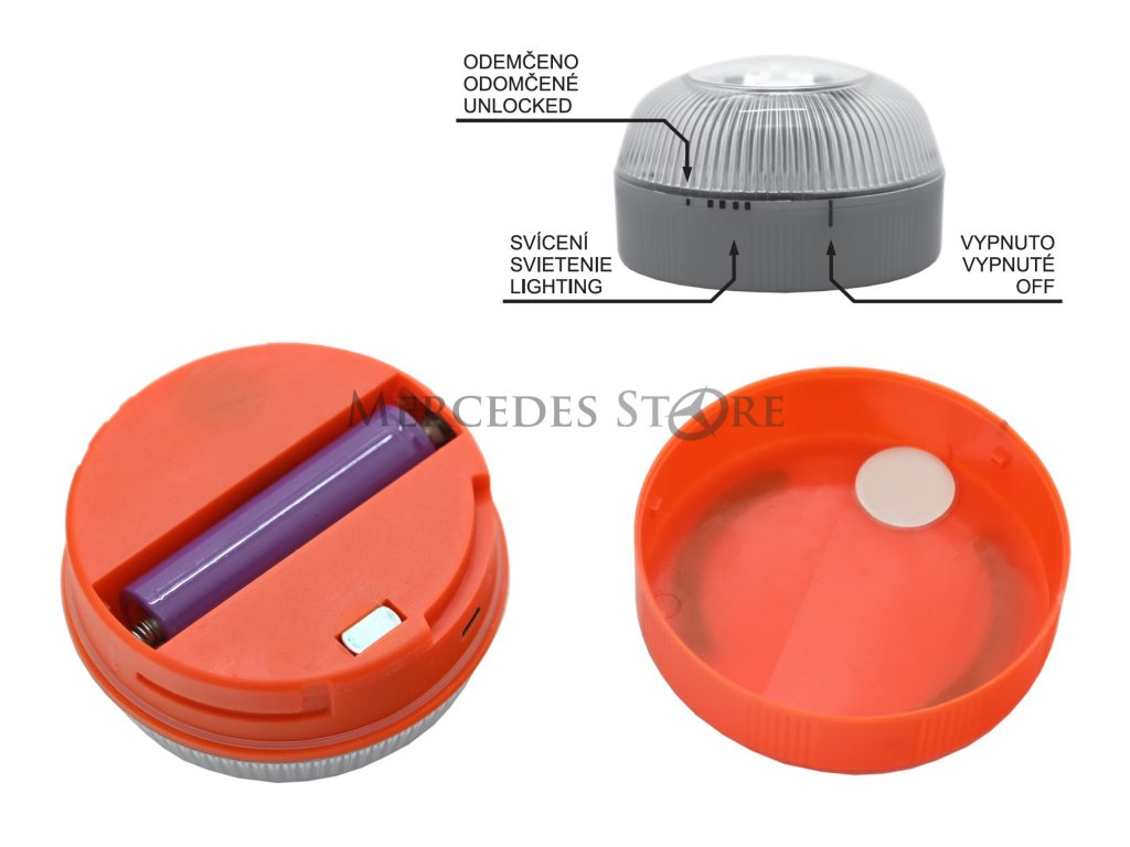 Tělo svítilny je vyrobeno z plastu a nabízí stupeň krytí IP54. Pomocí silného magnetu lze výstražné světlo rychle přichytit na karoserii vozidla. Na krytu i těle svítilny jsou značky poloh pro snadné ovládání. Zapnutí lze provést pootočením do polohy svícení, případně lze aktivovat přiložením na kovový povrch díky magnetu. Režimy svícení se střídají postupně při každé další aktivaci.
