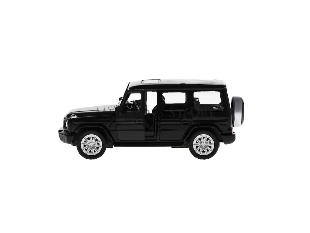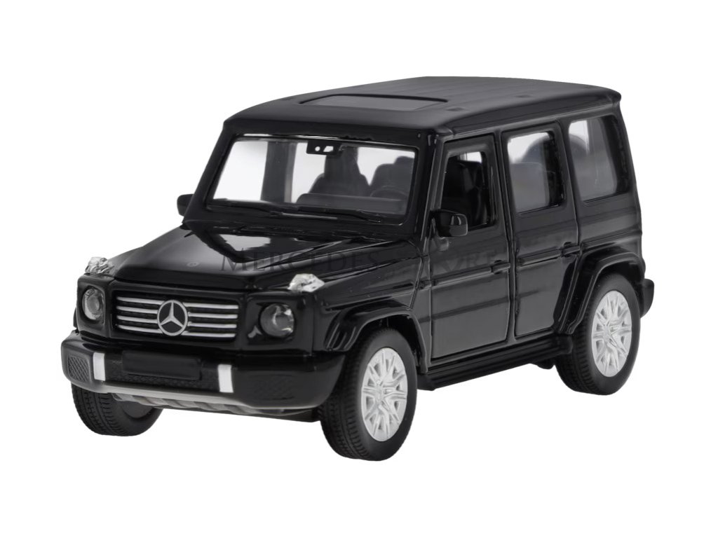 Zábava může začít! Třída G jako dětská hračka rozbuší srdce malých automobilových nadšenců a je sběratelským kouskem, se kterým si prostě užijete spoustu zábavy. Dveře řidiče a spolujezdce vozidla, které jsou lakovány v autentické barvě, lze otevřít a nahlédnout do interiéru. Hračka je také vybavena funkcí zpětného tahu: stačí autíčko zatáhnout dozadu a samo se rozjede dopředu. Vozidlo je dodáváno v obalu, který zobrazuje celou sérii. Zde lze zaškrtnout barevnou variantu, kterou již vlastníte. Pod různými barvami se na zadní straně navíc nachází pole, které nabízí prostor pro individuální texty. Balení modelu doplňuje také omalovánka, kterou uvidíte po vyjmutí vozidla z obalu.