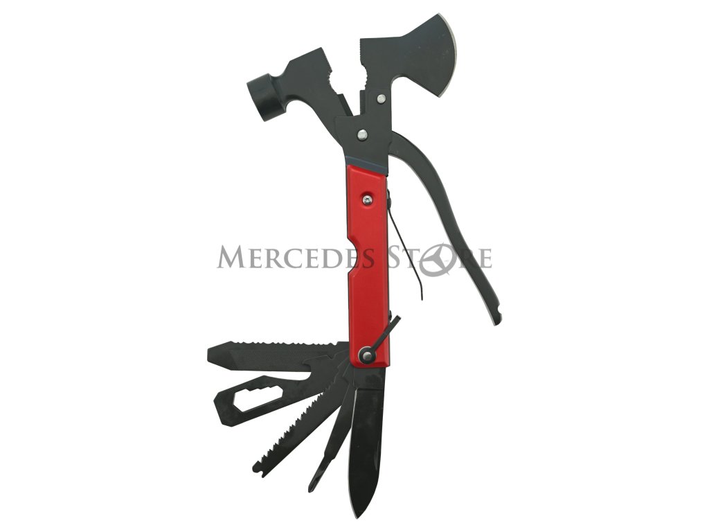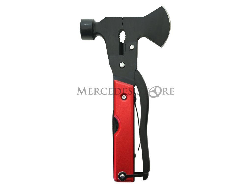 Nejvýraznějšími částmi jsou kladivo a sekyrka. Po rozepnutí pojistky na konci rukojeti, se v přední části odhalí čelisti, které mohou být použity jako kombinované kleště. Dále se nabízí klasický nůž délky 7 cm, křížový šroubovák nejběžnějších rozměrů, pilka na dřevo, odstraňovač šupin ryb a pilníkem se zakončením, jenž se dá použít jako plochý šroubobvák. Posledním nástrojem je otvírák, kombinovaný imbusovým nástavcem.