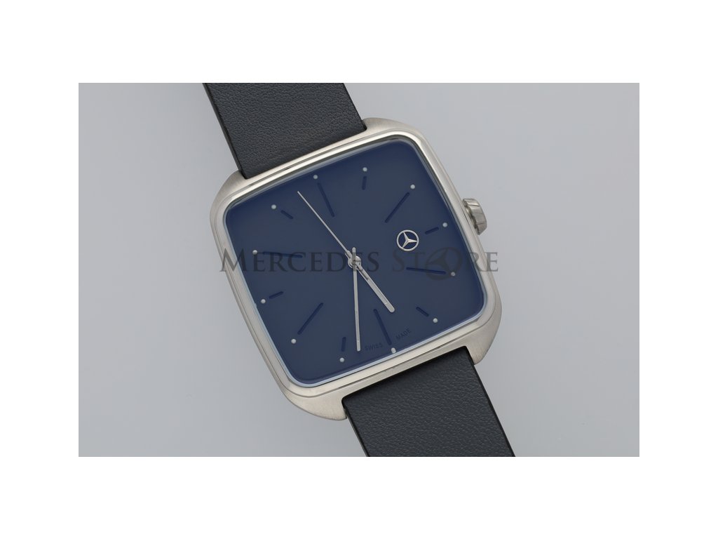 With its square case in stainless steel the modern men's watch is a highlight on any wrist and ensures that fashion-conscious men do not forget the time in a hurry - in a very special way. The anthracite-coloured dial features markers styled as a perforation, which enables a view of the black-coloured dial below. The special design is rounded off by a raised Mercedes star positioned at 3 o'clock. In order to ensure that the time can be seen even in the dark, the watch's silver-coloured hands feature Super-LumiNova® luminous material. The men's watch, which is driven by a Ronda 1063 quartz movement displaying the hour, minute and second, is water-resistant up to 5 ATM and features an anthracite-coloured calfskin leather strap with a pin buckle.