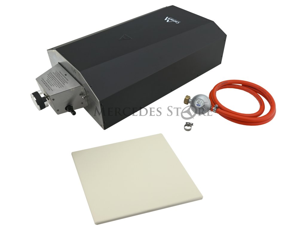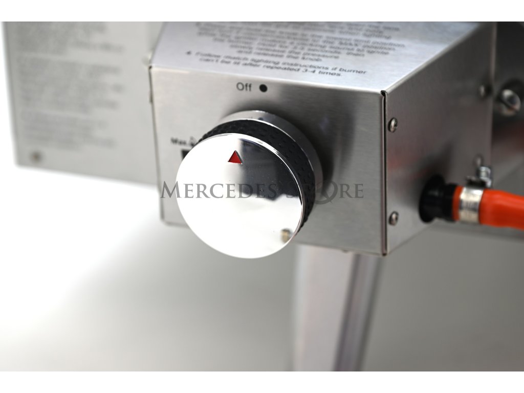 Pec je opatřena plynovým hořákem s vysokým výkonem pro koncentrované a rychlé rozehřátí. Hořák je doplněn piezo zapalováním pro snadné zažehnutí plamene s ovládáním na zadní straně pece. Ovladačem je rovněž možné plynule regulovat výkon.