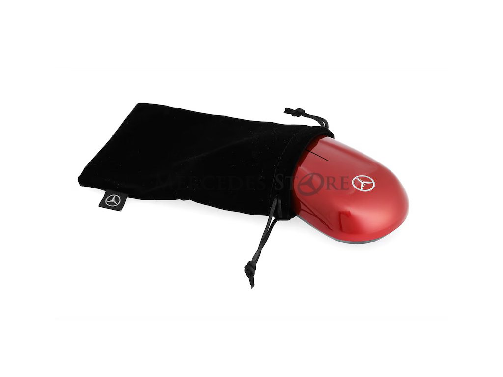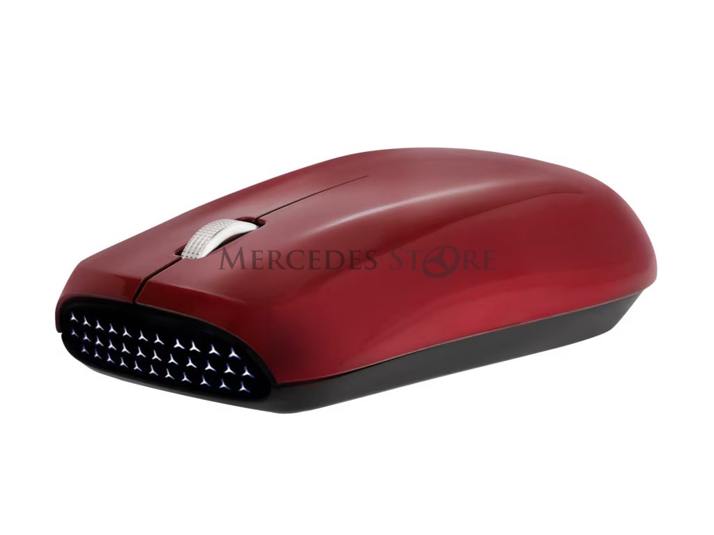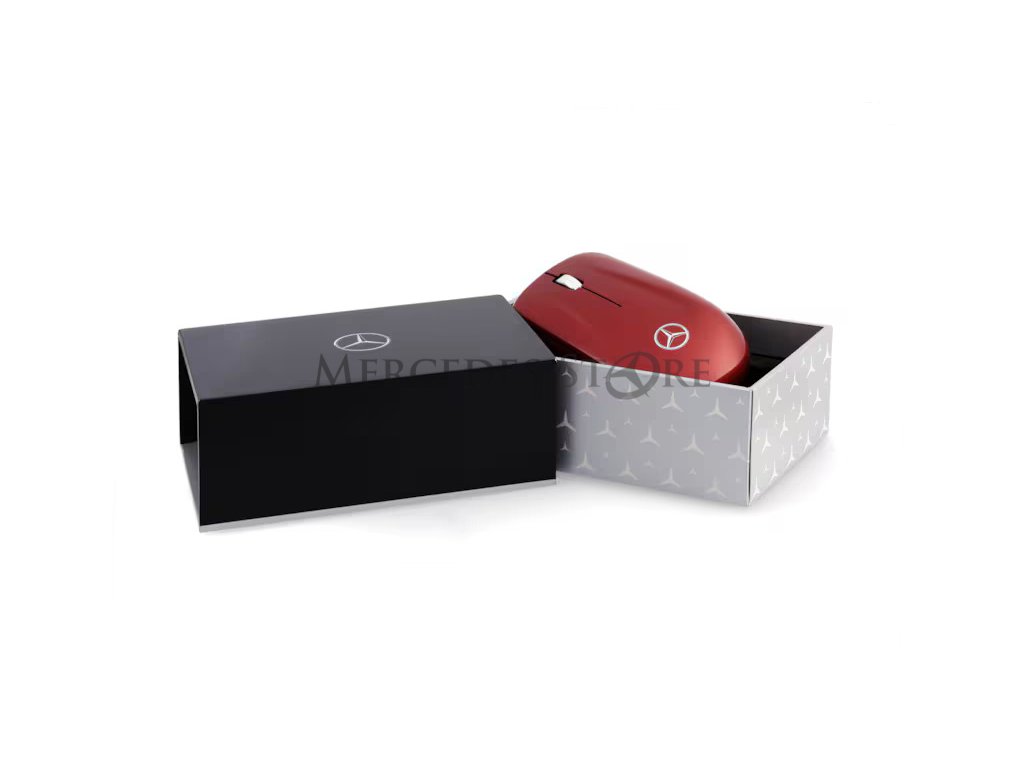 Sportovní design za pracovním stolem: Počítačová myš zaujme typickými stylovými prvky Mercedes-Benz a hliníkovým kolečkem ve stříbrné barvě. Vrchní plášť myši je nalakován autentickým červeným odstínem MANUFAKTUR Patagonienrot metallic a potištěn stříbrnou hvězdou Mercedes. Působivá je i přední část, která se svým prosvětleným vzorem Mercedes-Benz vychází z masky chladiče Mercedes-Benz. Logo Mercedes-Benz je vytištěno také na USB přípojce. Připojení k notebooku nebo počítači lze snadno navázat pomocí 2,4 GHz USB nano přijímače (plug & play). Myš s optickým senzorem pracuje s rozlišením 1600 DPI. Nezáleží na tom, zda používáte počítač se systémem Windows nebo zařízení Apple, počítačová myš je kompatibilní se systémy Windows 7, 8, 10, 11, Windows Vista, Windows XP a Mac OS nebo vyššími. Myš je dodávána v protiprachovém sáčku, který obsahuje také návod k použití. Baterie nejsou součástí dodávky.