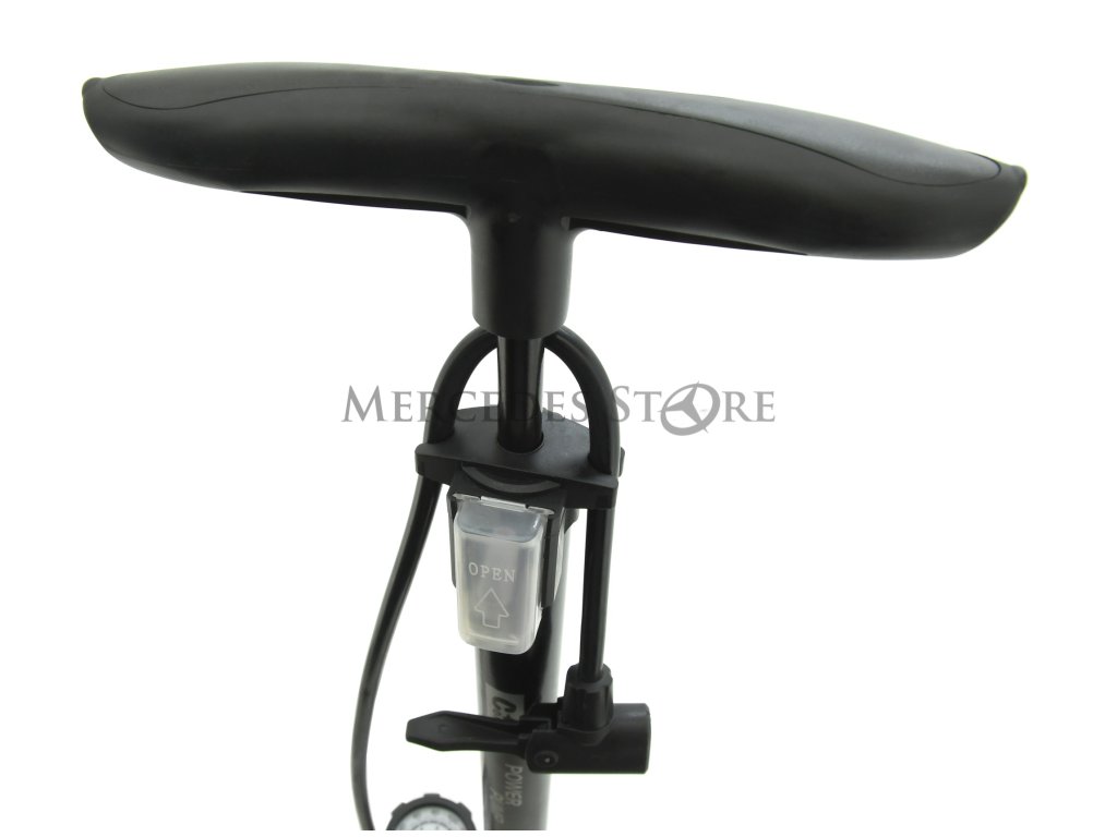 Ruční hustilka se zabudovaným měřičem tlaku, pro huštění pneumatik osobních automobilů i jízdních kol.