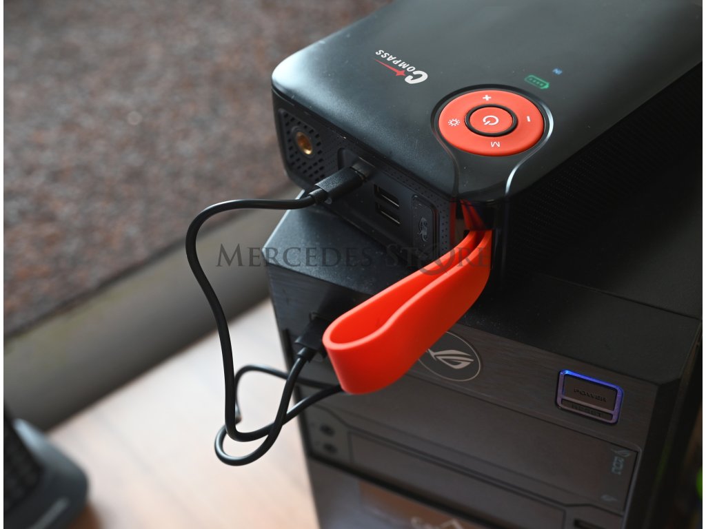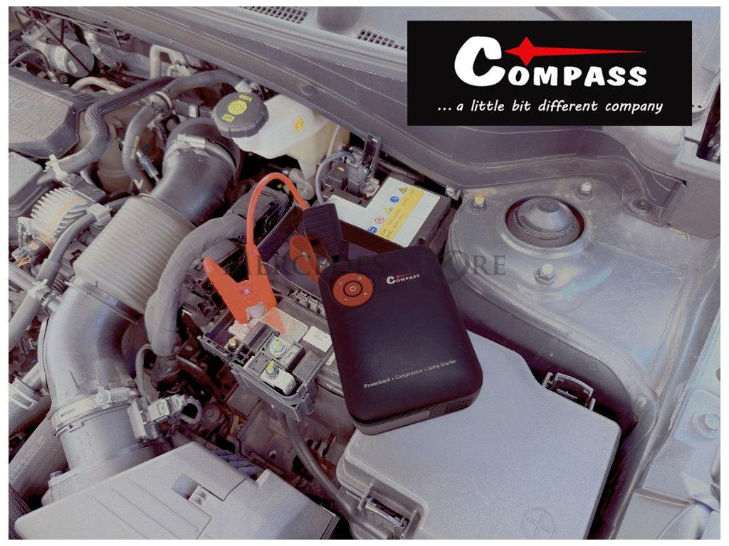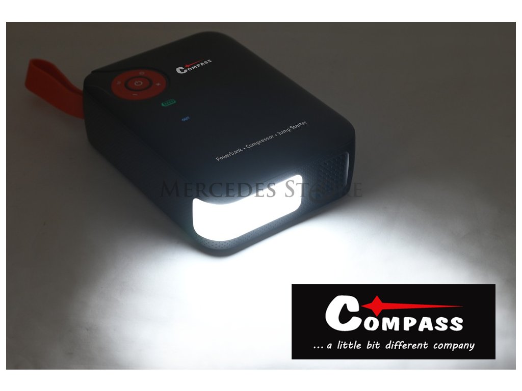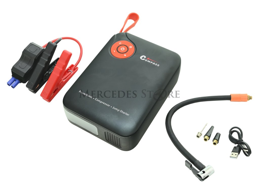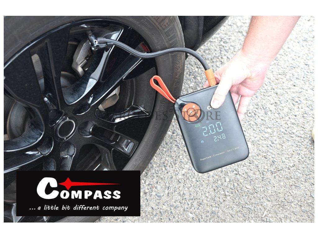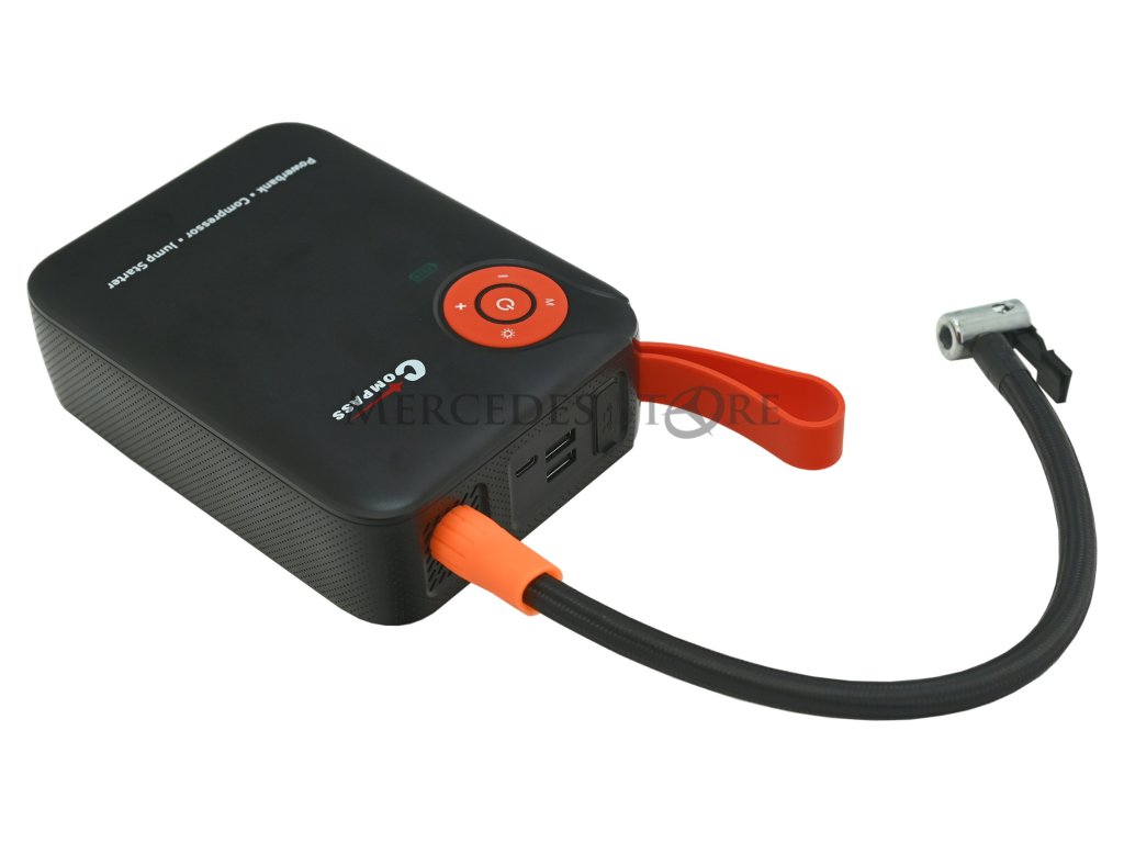 Kompresor s funkcí Autostop, s powerbankou o kapacitě 7.200mAh s rychlým nabíjením USB a funkcí nouzového startování vozidla pomocí Smart klipsů.