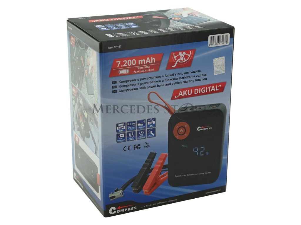 Kompresor AKU DIGITAL + JUMP STARTER s powerbankou 7.200mAh 600A