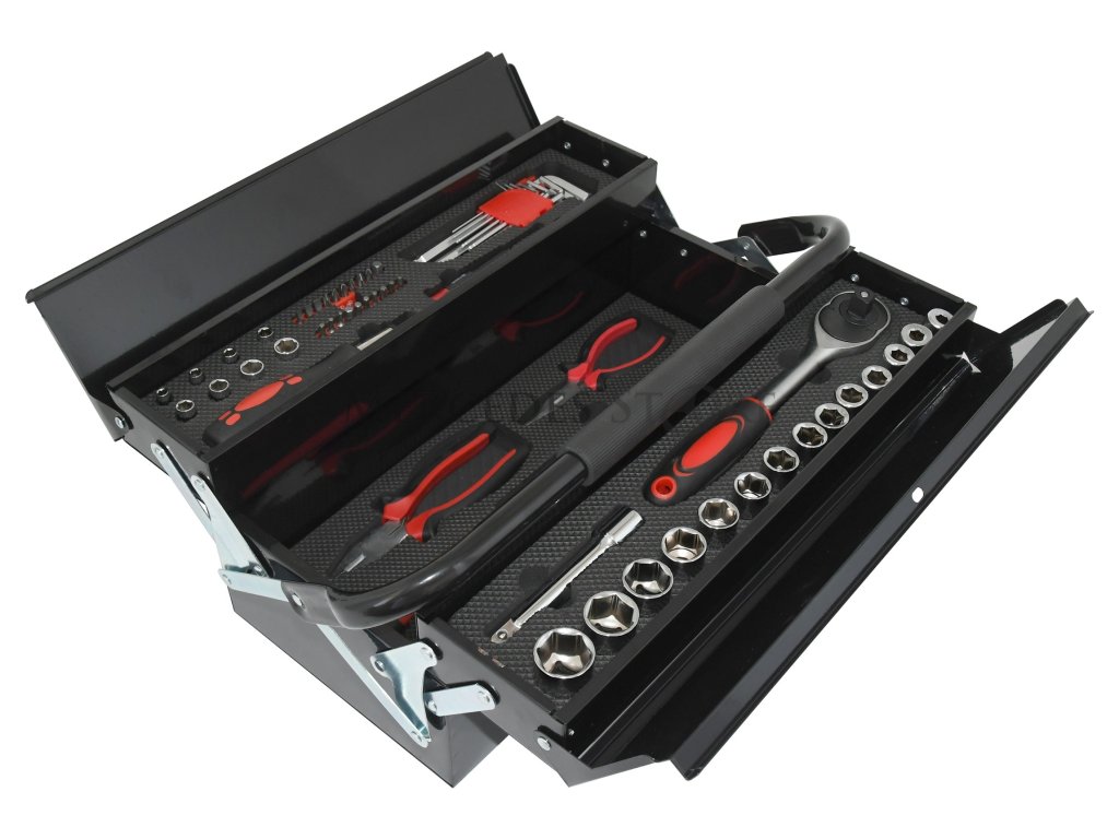 Praktický, celokovový kufr s kvalitním nářadím z CrV oceli, vhodný do dílny i do garáže.