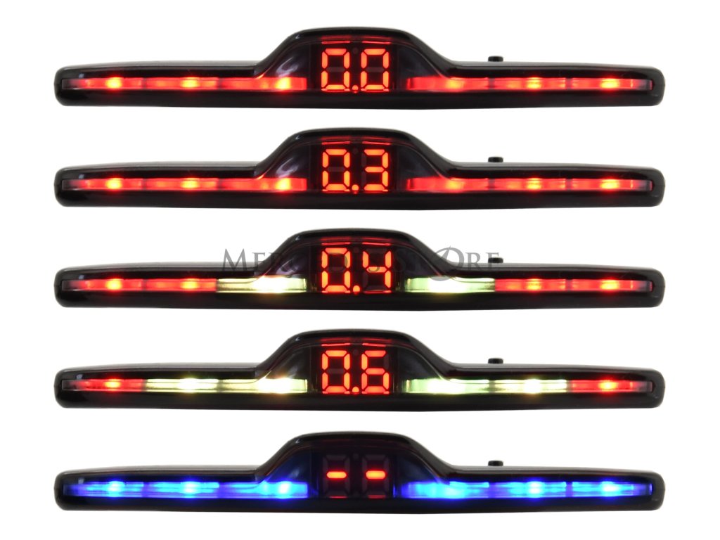 Parkovací asistent s LED displejem a s číselným ukazatelem pro komfortní vizuální signalizaci vzdálenosti od překážky. Funguje na principu ultrazvukových vln přenesených pomocí senzorů v zadním nárazníku. Aktivuje se zařazením zpátečky.