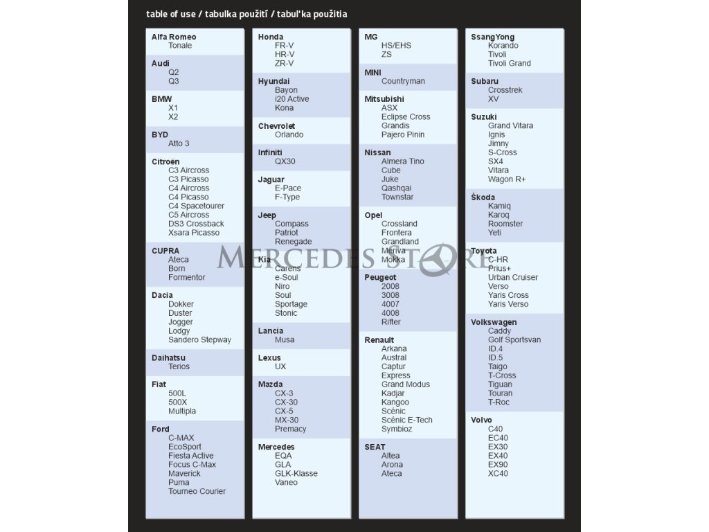 velikost CITY-SUV - vhodné pro vozy: | |