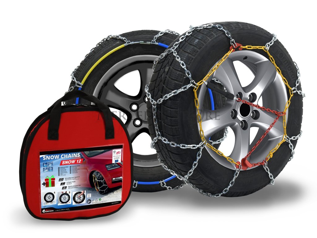Sněhové řetězy se zesílenými oky, pro osobní vozidla do hmotnosti 2200 kg, splňující evropské normy včetně v Rakousku vyžadované "ÖNORM V 5117".