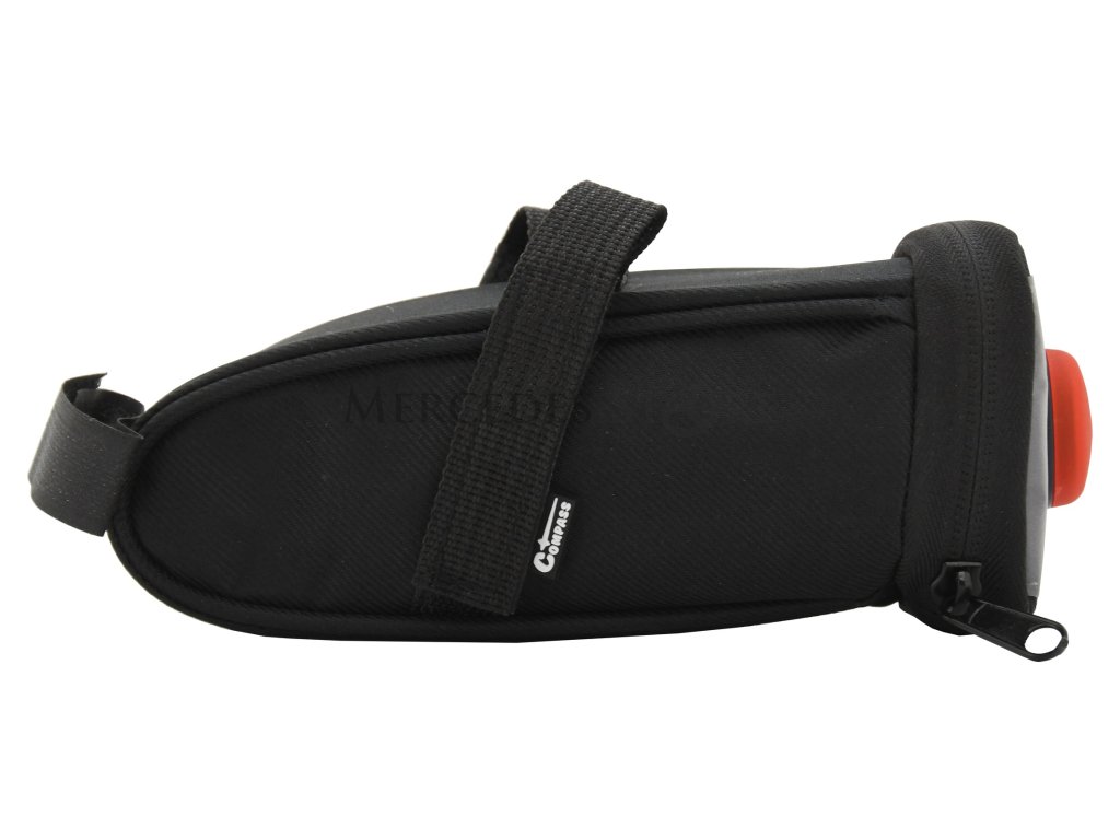 Na vrchní části jsou umístěny nastavitelné přezky pro jednoduché upnutí k různým konstrukcím sedel a přední část lze přichytit k sedlové tyči.